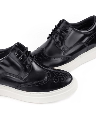 Zapatos con alzas. Exterior de piel box-calf. Interior totalmente forrado en piel de primera calidad. Suela de goma EVA ultraligera.